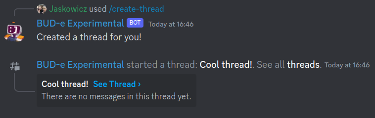 If all went well, you'll see that the bot has successfully created a thread!